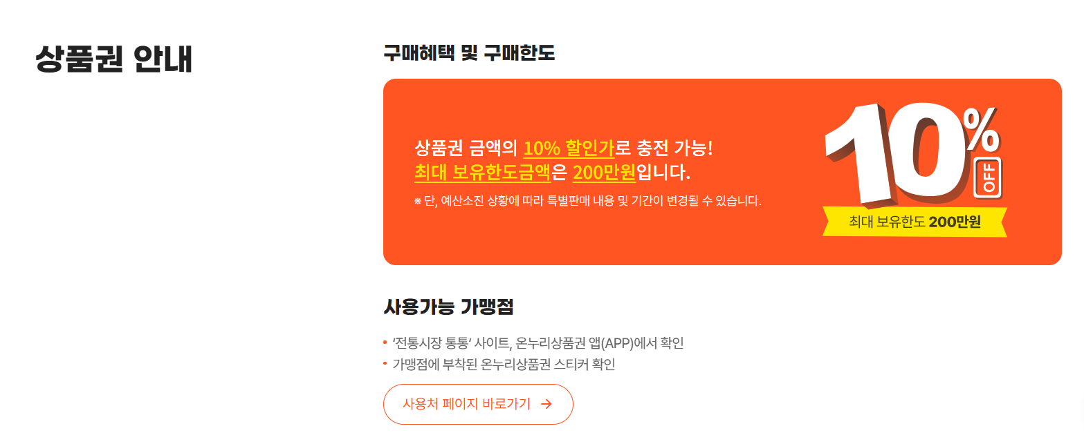 | 온라인 쇼핑몰 | 일부 전통시장 온라인 쇼핑몰 | 디지털 온누리상품권 사용 가능 |