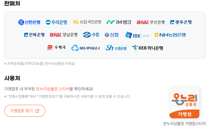 | 전통시장 가맹점 | 온누리상품권 가맹점 스티커 부착 | 디지털 온누리상품권 사용 가능 |