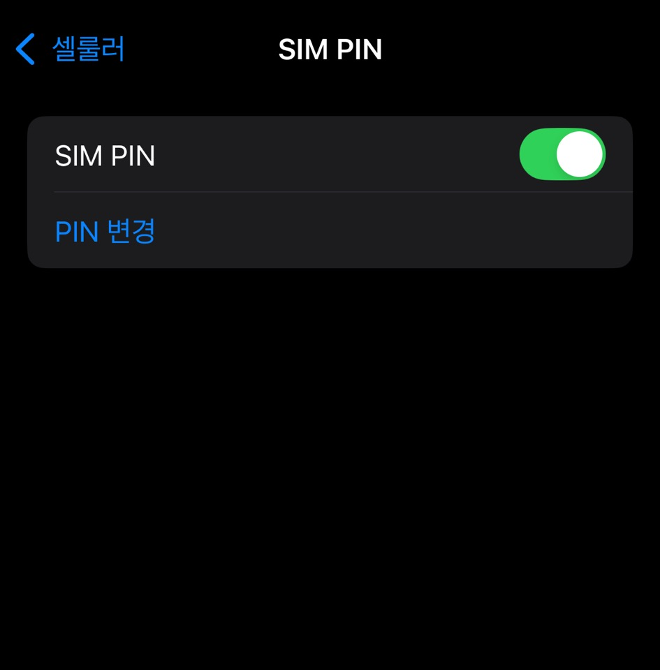 | 아이폰 | 설정 ➔ 셀룰러 ➔ SIM PIN | 부팅 시 PIN 재입력 필요 |