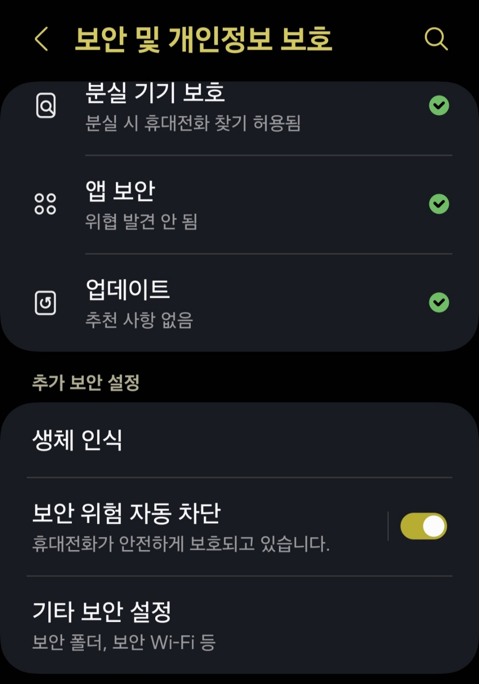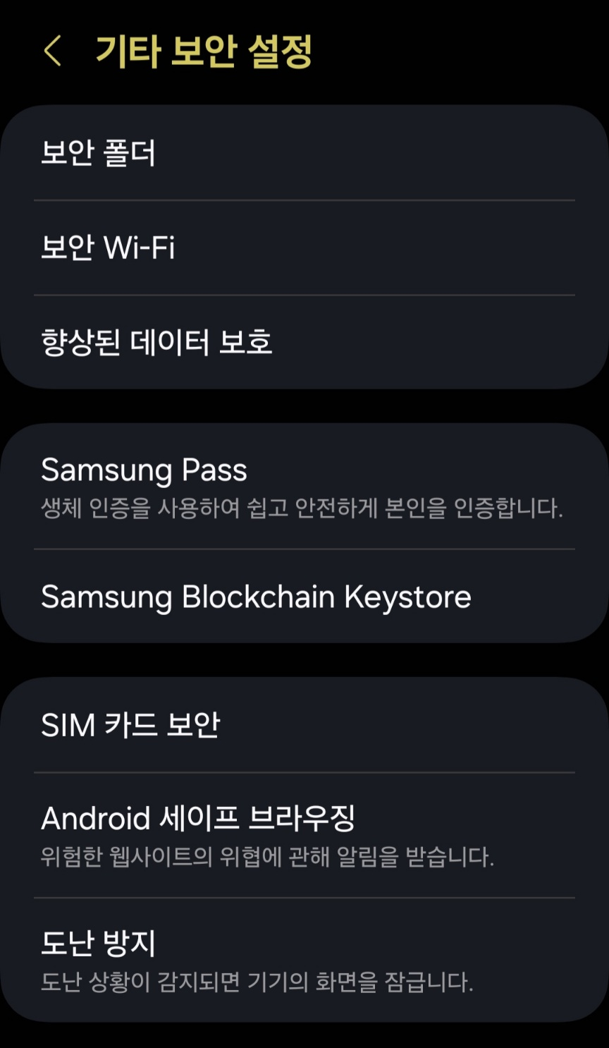| 공통 | 설정 ➔ 셀룰러/모바일네트워크 ➔ SIM 관리자 ➔ SIM 잠금 | SKT 기본 PIN 0000 사용 |