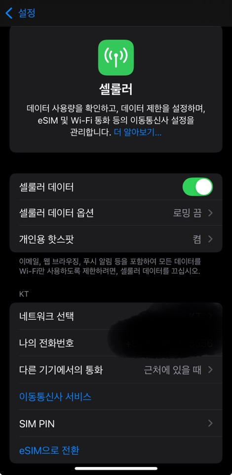 아이폰에서는 폰 재부팅 시 반드시 PIN을 다시 입력해야 통신이 정상 작동합니다.