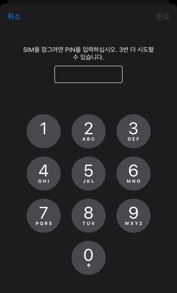 ✅ 기본 PIN 번호 3회 틀리면 유심이 잠금 상태로 전환됩니다.