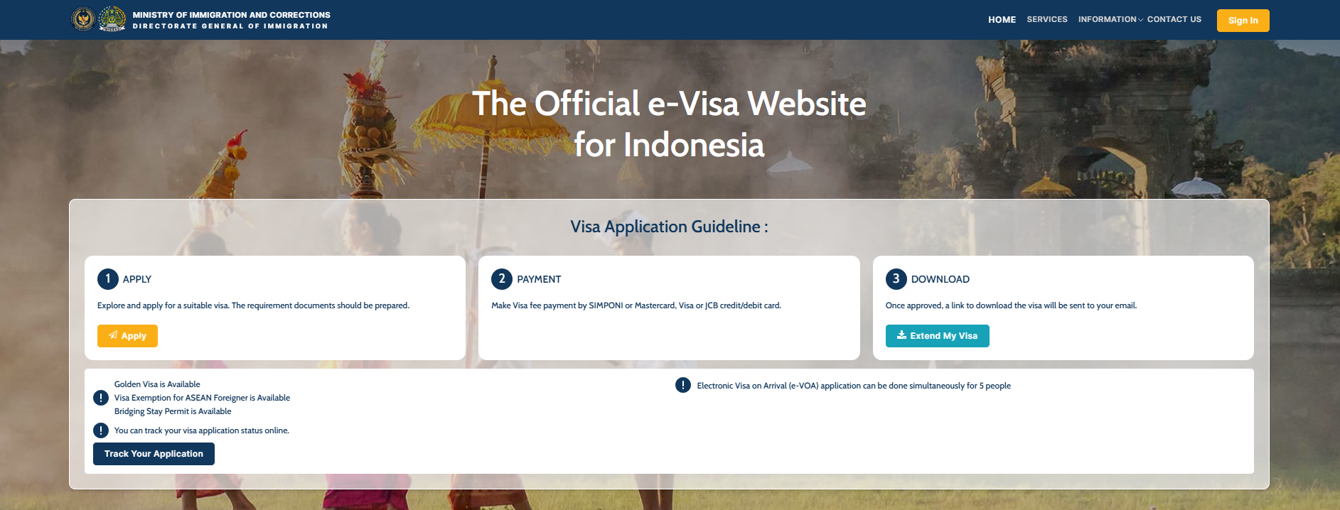 최근에는 현장 발급 외에도 온라인으로 미리 비자를 신청하는 e-VOA 시스템이 도입되었습니다. 인도네시아 정부 공식 사이트(https://molina.imigrasi.go.id)에서 신청할 수 있으며, 시간 절약 측면에서 많은 여행객들이 선호합니다.