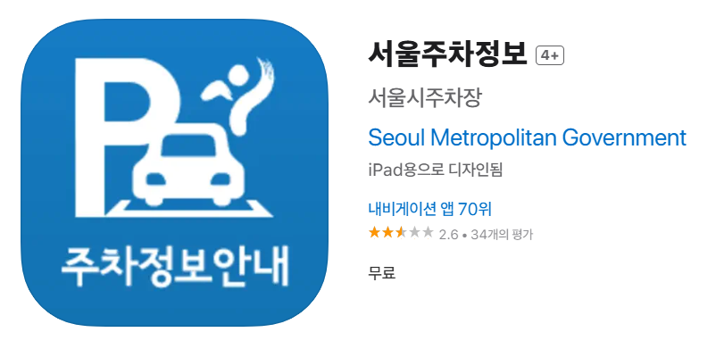 서울주차정보 앱을 설치하면 주변 공영주차장의 실시간 빈자리 확인이 가능합니다.